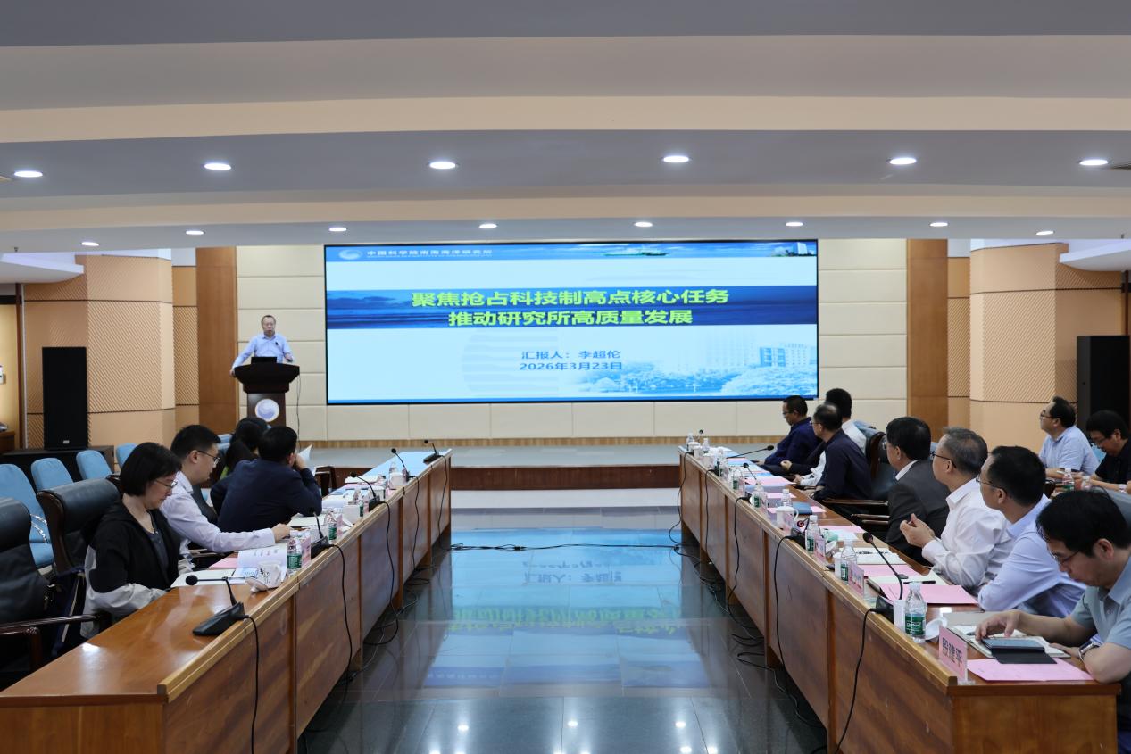 3月23日,广州分院分党组书记黄从利一行调研南海海洋所,南海海洋所所领导班子成员,所务委员,实验室和管理部门负责人参加座谈交流。李超伦汇报了研究所“十四五”成果、“十五五”规划编制情况和2026年重点...2026-03-25