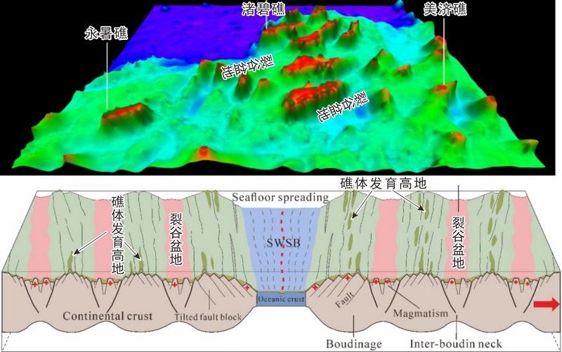 成果简介:“地球内部如何运行”被Science杂志列为全球最具挑战性的科学问题之一;国家基金委也将“地球深部与浅表系统互馈机理与效应”作为重点发展方向。南海形成于中生代古太平洋板块俯冲背景下的新生代岩石圈伸展与海底扩张,塑造了独特的岛群地貌与活跃的岩浆流体分布,是研究地球深浅部耦合演化机制的极佳场所。因此,南海深部过程如何塑造浅表岛群地貌及岩浆流体活动一直是国内外关注的前沿科学问题。